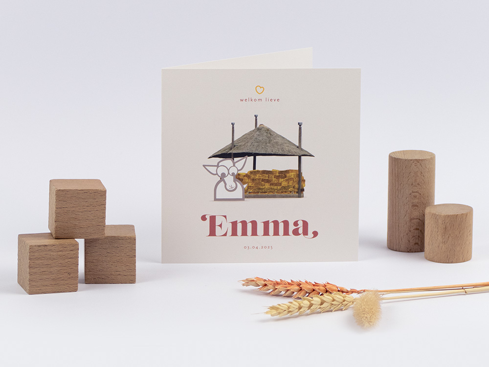Breng de wereld op de hoogte van de komst van jullie kleintje met een geboortekaart van Broezel Lam, liggend onder een charmante hooiberg. Dit liefdevolle kaartje is beschikbaar in twee prachtige kleurenschema’s: oud Hollands roze en petrol oceaan groen.
